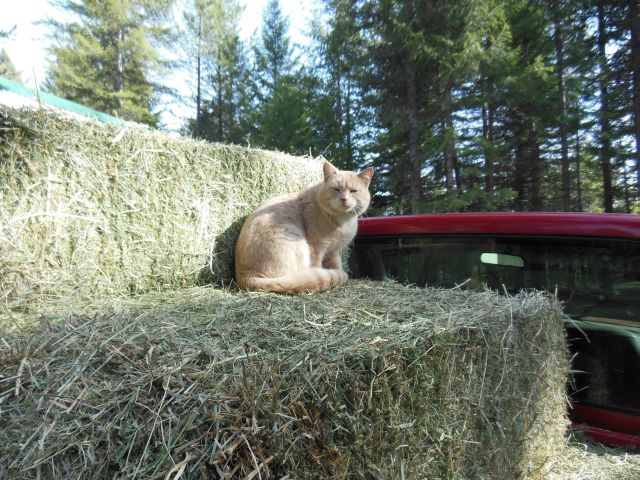 hay 010O’Malley was very disappointed when I took the bales off of the truck and stacked them in the hay trailer. He liked the warmth of the hay and the sunshine 🙂