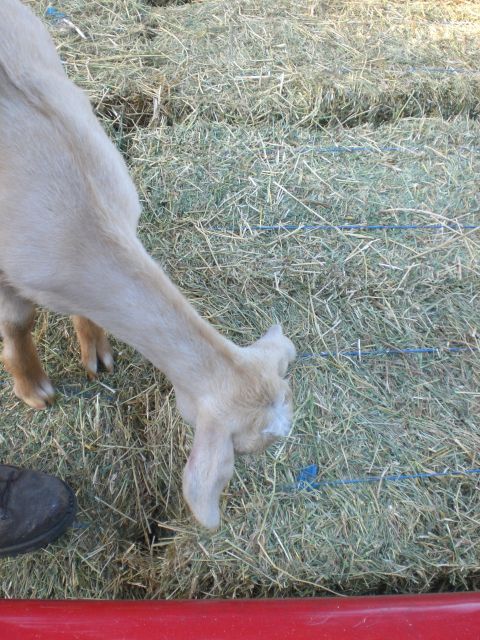 pecan pie bars, goat coats 050Because these bales are longer, they tend to stick out a bit more.
