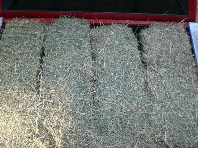 hay 006The first bale of the top layer (closest to the cab) sits on it’s strings (strings are visible on top).