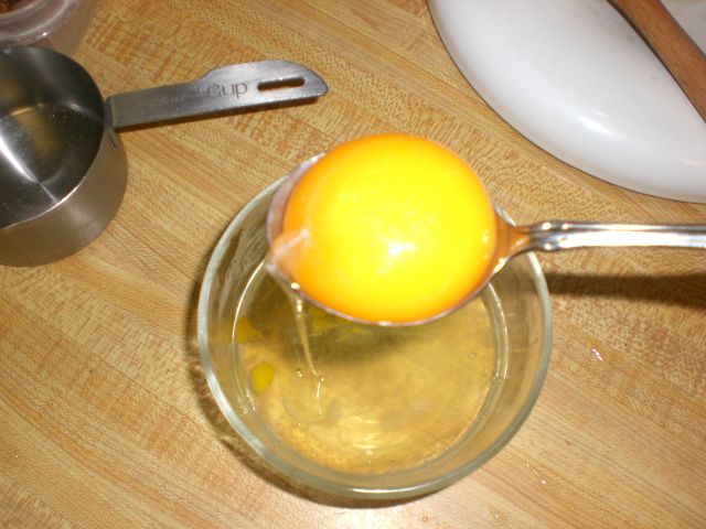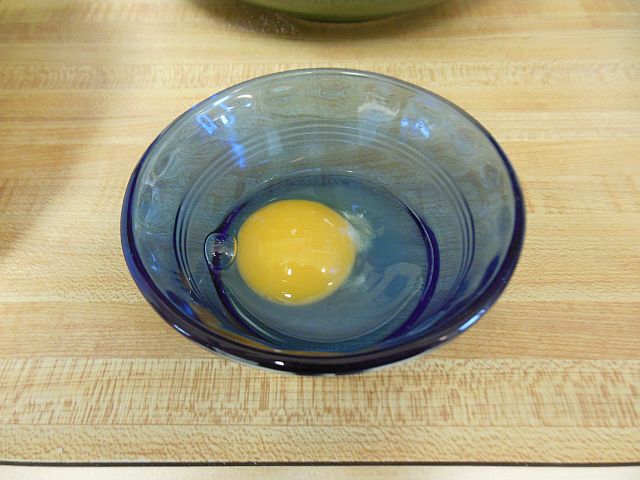 egg yolk 001Eggs from healthy chickens will have a brightly colored yolk, visible choriza (the opaque white part), two distinct parts to the white and sit up taller than eggs from battery raised chickens.