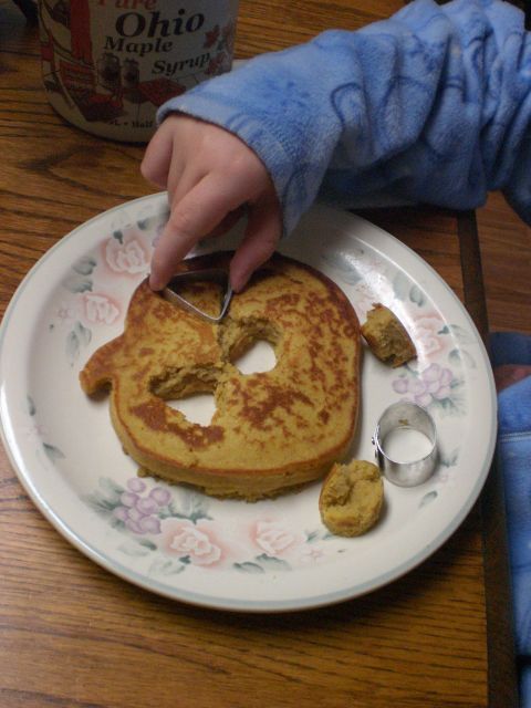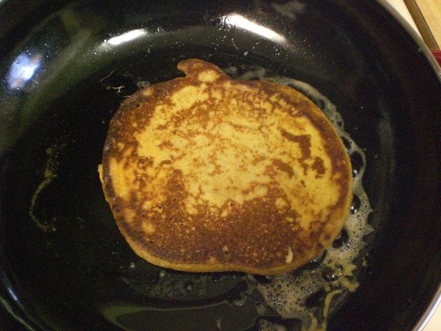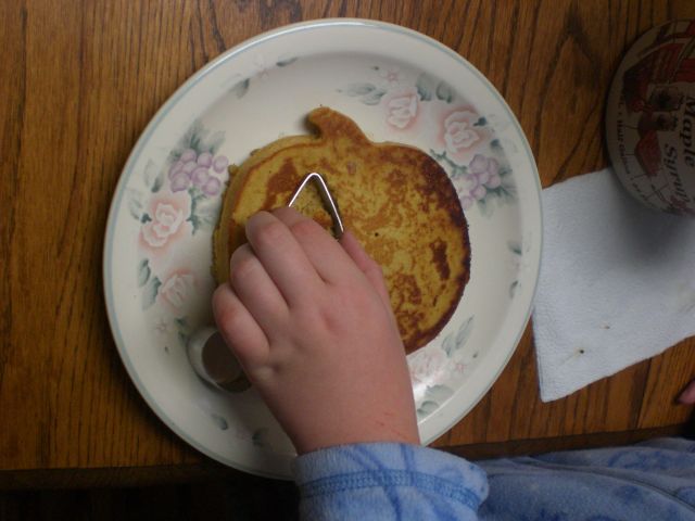 Since these are pumpkin flapjacks (Heather won’t eat pancakes 🙂 ), I used a pumpkin shaped pancake form.