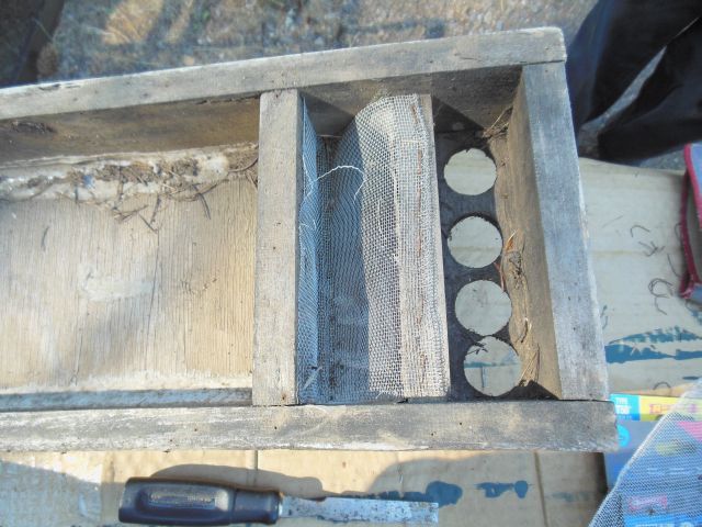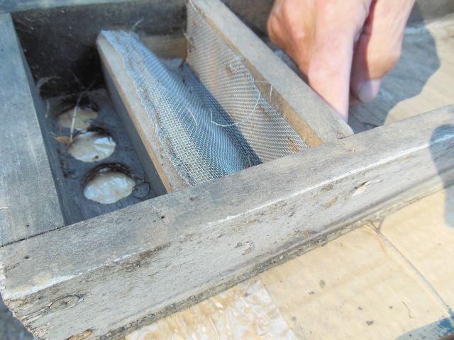 You can see where the sugar water goes in the large area on the left. The dividing board on the left is raised just enough to allow sugar water to flow underneath.
