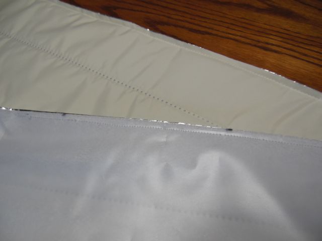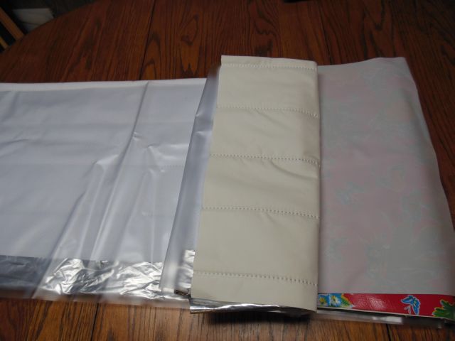 The outer layer is a heavy duty waterproof fabric. It was labeled as commercial tablecloth stuff. It runs around $13 a yard.