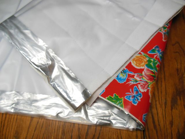 It has a layer of neutral fabric, a layer of insulation, a layer of mylar stuff – similar to emergency blankets, and then another layer of insulation.