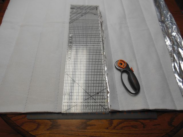 I just used a quilting ruler and mat, along with a rotary cutter to cut the fabric.