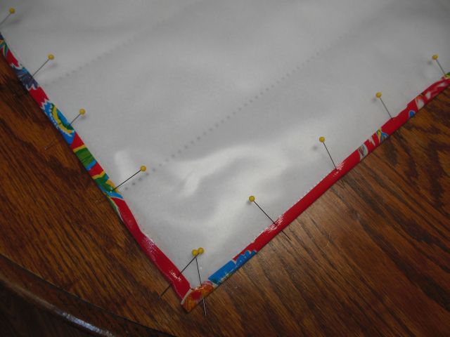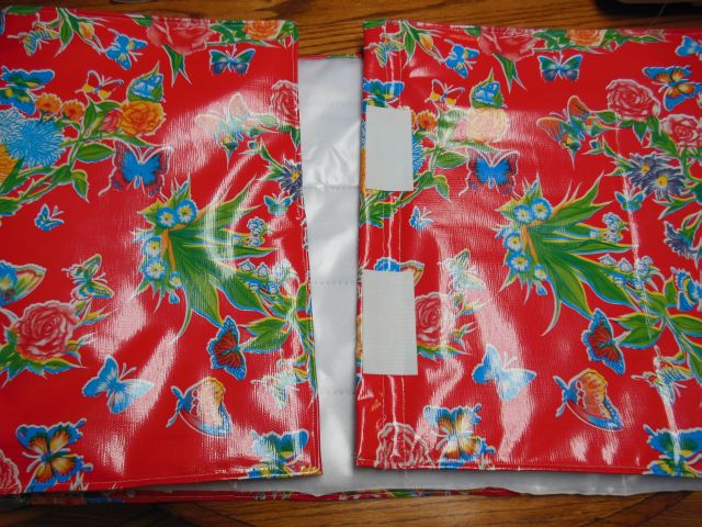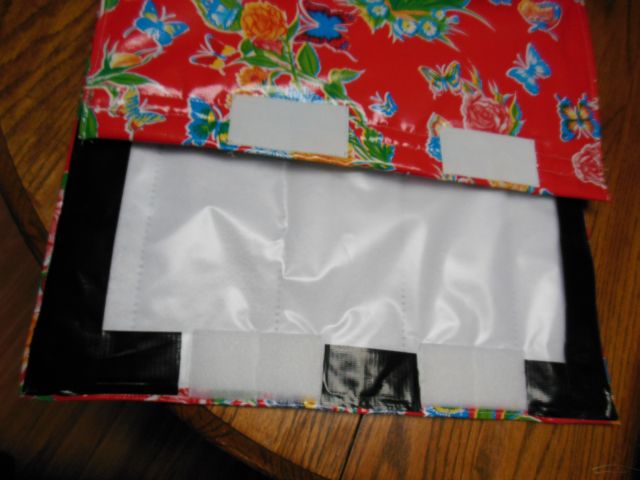 I cut the outer fabric an inch wider than the inner fabric and the clear plastic. This allowed me to fold over the outer layer 1/2″ all around, helping to prevent moisture from getting into the inner layer.
