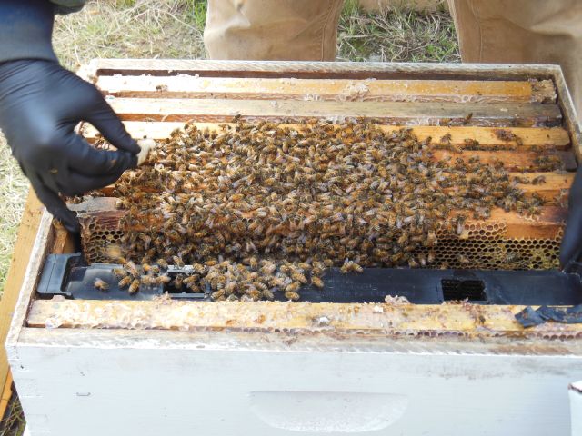 Not only will this board help feed the bees through the winter, but it will also help absorb excess moisture that accumulates in the hive through the colder months.