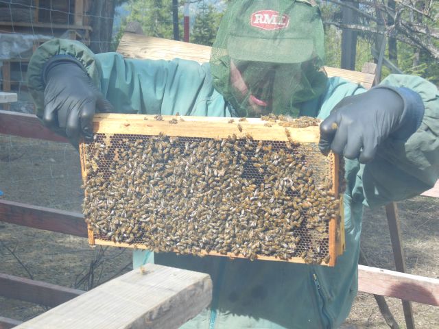 Andy was disappointed with the lack of brood and honey in the nuc frames this year. But we got two queens and a bunch of bees, so we’ll just roll with it.